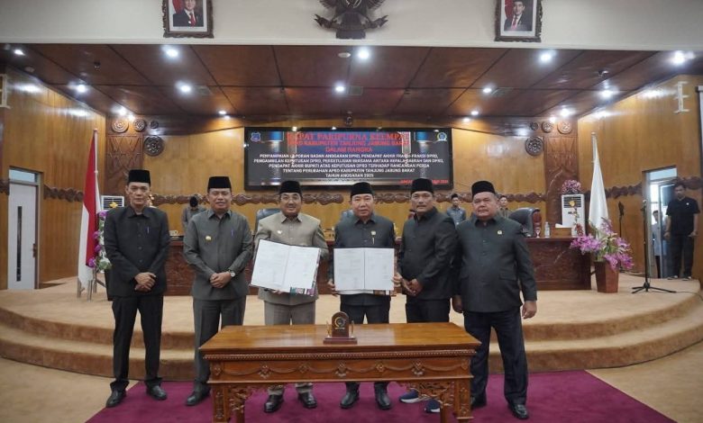 DPRD Kabupaten Tanjung Jabung Barat (Tanjab Barat) bersama Pemerintah Kabupaten (Pemkab) Tanjab Barat resmi menandatangani Rancangan Peraturan Daerah (Ranperda) tentang Perubahan Anggaran Pendapatan dan Belanja Daerah (APBD) Tahun Anggaran 2025. Penandatanganan ini berlangsung dalam Rapat Paripurna keempat yang digelar di Gedung DPRD Tanjab Barat pada Jumat (12/9/2025).