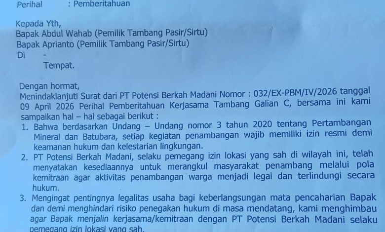 ‎”Saya sudah menghimbau para pemilik tambang galian C ilegal untuk segera mengurus legalitas dengan cara bermitra dengan perusahaan yang memiliki izin resmi,” ujarnya saat dikonfirmasi melalui WhatsApp, Senin (20/4/2026).