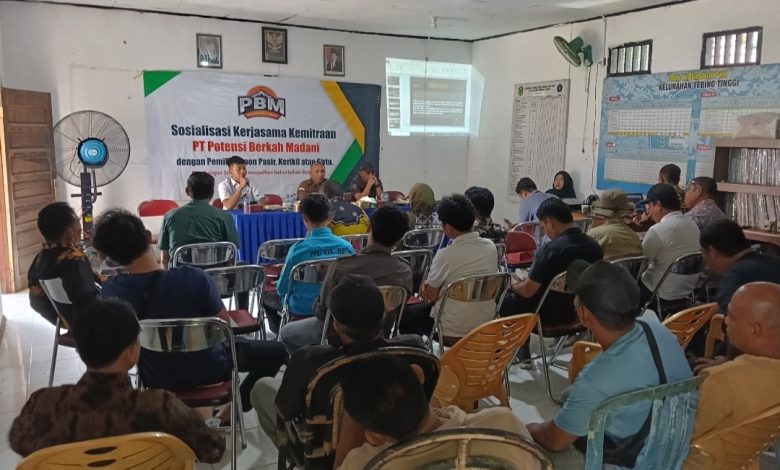 Katafakta.id – Tebo, PT Potensi Berkah Madani (PBM) menggelar kegiatan sosialisasi perizinan dan kemitraan pertambangan pasir dan kerikil (sirtu) di Aula Kantor Kelurahan Tebing Tinggi, Kecamatan Tebo Tengah, Kamis (30/4/2026).