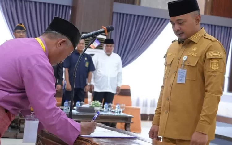 TEBO-Dalam persiapan MTQ Ke l-21 Bupati Tebo, Agus Rubiyanto, S.E., M.M., secara resmi melantik Tim Pengawas, Dewan Hakim, dan Panitera Dewan Hakim Musabaqah Tilawatil Qur’an (MTQ) ke-21 Tingkat Kabupaten Tebo. Kegiatan ini berlangsung di Aula Pendopo Rumah Dinas Bupati Tebo pada Selasa (23/9/2025).